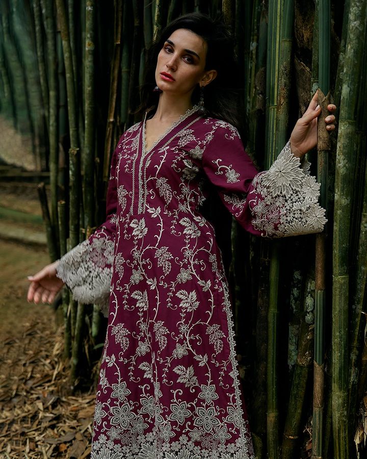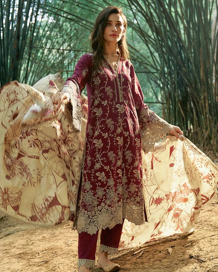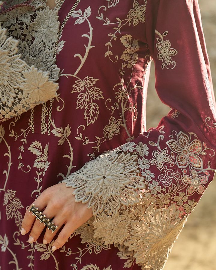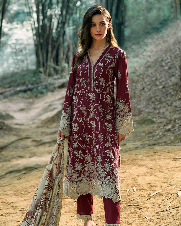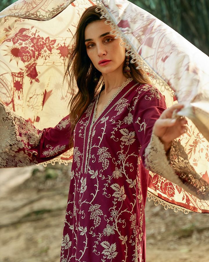 Asim jofa Lawn Embroiderd Three piece Mehroon AJM-01