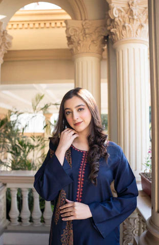 - Dyed Dhanak Fabric front/Back With Neckline Embroiderd